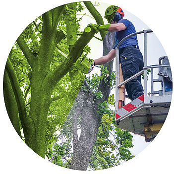 Auch unter schwierigen Bedingungen und beengten Verhältnissen wie in Hinterhöfen, über Dächern und Leitungen tragen wir Bäume unter Einsatz der Seilklettertechnik, der Hubarbeitsbühne und mit Kranfahrzeugen sicher ab.